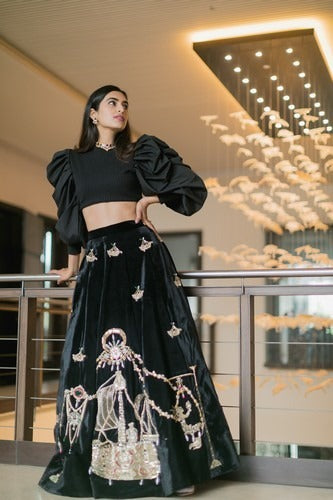 Fabric - Velvet For Skirt, Crepe And Lycra For Blouse